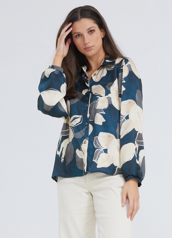 bleu/beige  I  col polo  I  longues manches  I  fermeture à boutons
