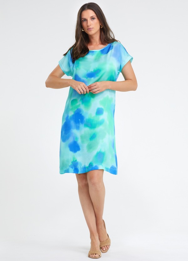 tons bleus et verts I encolure ronde I manches courtes kimono I imprimé aquarelle