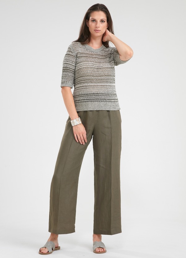 kaki I pantalon droit I taille haute I taille élastique I poches latérales