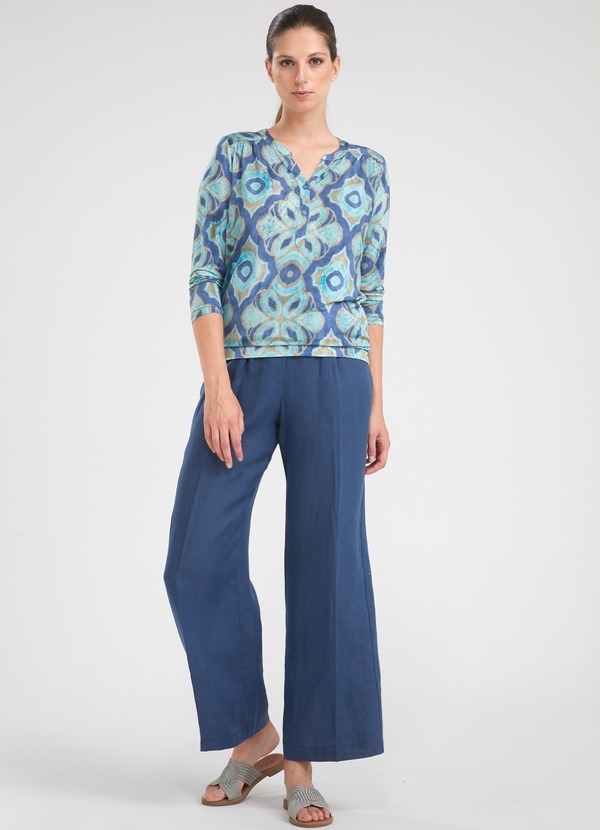 marine I pantalon droit I taille haute I taille élastique I poches latérales
