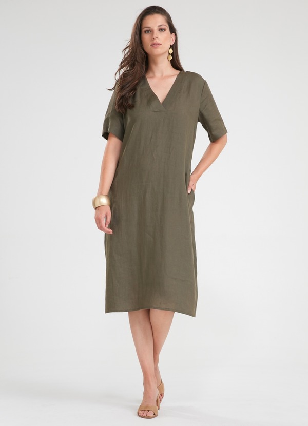 kaki I encolure en v I manches courtes I poches latérales
