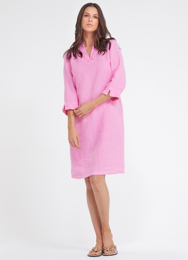 roze I v-hals I 3/4 mouwen I broderiedetalis aan de hals en manchetten