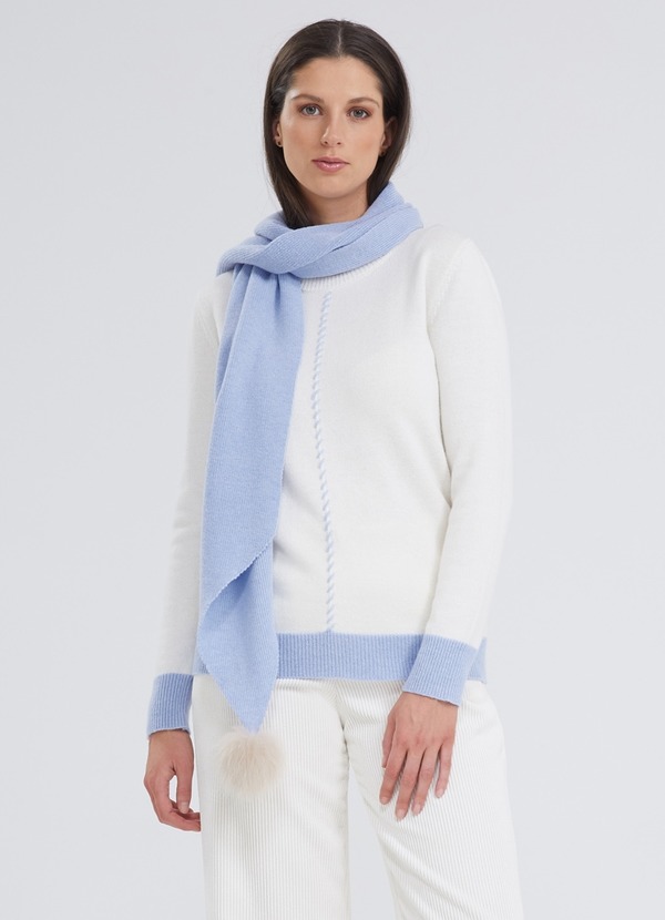 écru/lichtblauw I ronde hals I lange mouwen I contrast boorden en stiksels