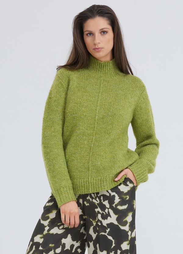 avocado I opstaande kraag I lange mouwen I geribbelde boorden