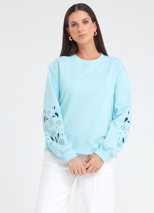 turquoise I ronde hals I lange mouwen met broderie I lage mouwinzet I geribbelde boorden