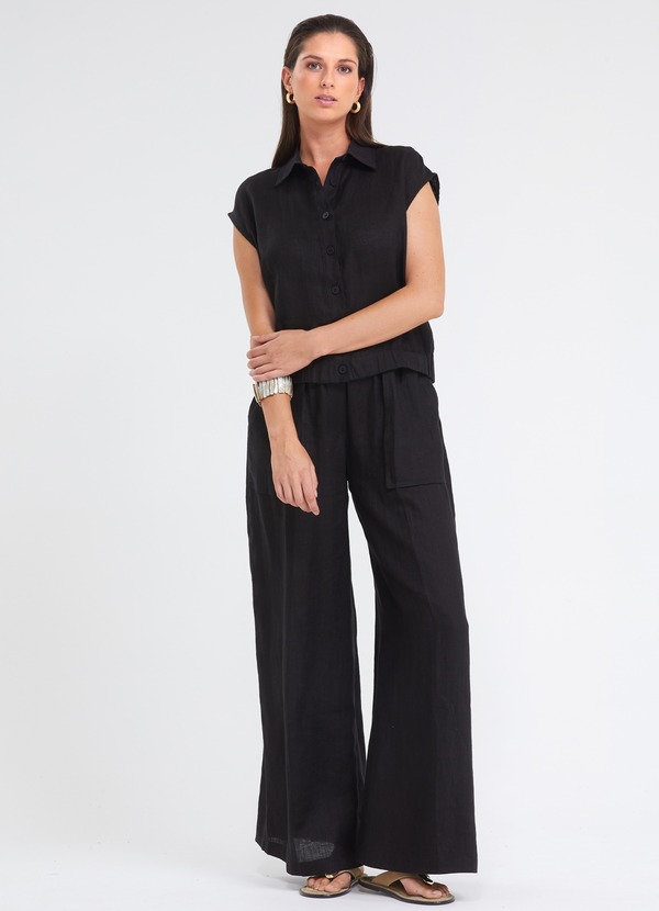 zwart I hoge taille I elastische tailleband I opgestikte zakken